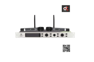 + Mặt trước đầu thu bao gồm tên thương hiệu, sản phẩm, màn hình LCD, các nút điều khiển 2 kênh, công tắc nguồn được sắp xếp khoa học - Tay micro: