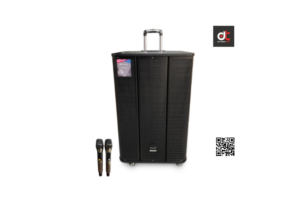Bộ loa bao gồm loa kéo, micro không dây, remote điều khiển.